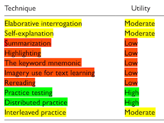 The techniques listed in the image could be added to lesson planning to help students learn better, but keep in mind that they are not all equally effective, and with each of those techniques comes a sub-set of skills that need to be taught.
